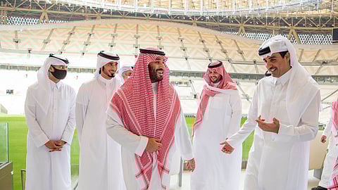 اصطحب أمير قطر تميم بن حمد، أخاه صاحب السمو الملكي الأمير محمد بن سلمان بن عبدالعزيز آل سعود، وليَّ العهد، نائب رئيس مجلس الوزراء، وزير الدفاع، في زيارة لإستاد لوسيل في العاصمة القطرية الدوحة.