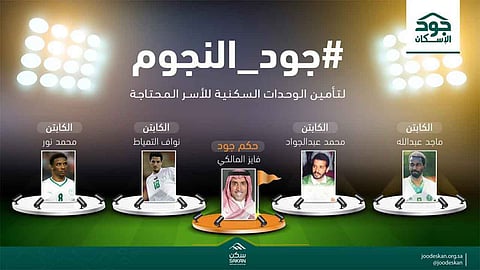 وأسهم النجوم السابقون لأربعة أندية سعودية (الهلال والنصر والاتحاد والأهلي) في توفير المسكن للأسر الضمانية عبر منصة جود الإسكان، حيث تمكنت المنصة منذ تأسيسها قبل عام من خدمة أكثر من 1200 أسرة، إذ تهدف إلى تقديم العون والمساعدة للأسر المحتاجة في المجال السكني ضمن عدة مسارات، كما تهدف إلى تفعيل الدور الاجتماعي عبر تقديم نموذج للتكافل الاجتماعي من خلال تكامل أدوار الجهات الحكومية والخيرية والتجارية والأفراد لتقديم يد العون للعطاء الخيري السكني عبر منصة إلكترونية تحقق الحوكمة والشفافية والدقة والاحترافية واستدامة العطاء الإسكاني للأسر الأشد حاجة.