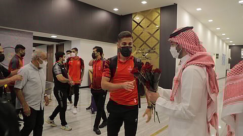 ونشر الحساب الرسمي للاتحاد السعودي لكرة القدم صورًا للفريق الإيراني لحظة وصوله إلى الرياض، وفي استقباله بعض من مسئولي الهلال.