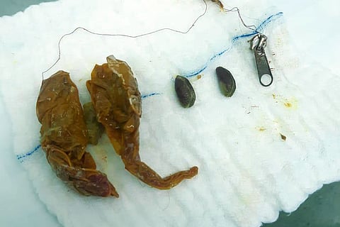وتم إخراج العديد من الأجسام الغريبة، مثل قطع بلاستيك ملفوفه وقطع حديد وخيوط وشعر ونوى التمر، وتم تنظيف الأمعاء وخرج من المستشفى بحالة صحية جيدة.