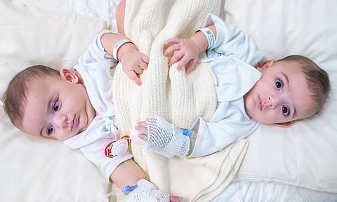 وقال المشرف العام على مركز الملك سلمان للإغاثة والأعمال الإنسانية رئيس الفريق الطبي الدكتور عبدالله الربيعة، في تصريحات سابقة؛ إن التوأم السيامي يلتصقان من أسفل الصدر والبطن والحوض، كما يشتركان في أسفل الجهاز الهضمي والجهاز البولي والتناسلي وفي حوضٍ واحد.