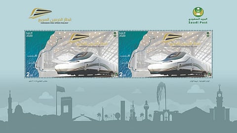 أصدرت مؤسسة البريد السعودي، طابعًا بريديًّا من فئة «2 ريال»، بعنوان «قطار الحرمين السريع».