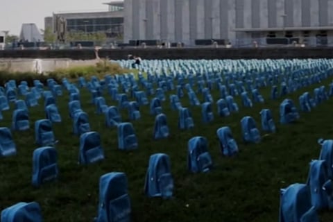 أقامت الأمم المتحدة مقبرة لحقائب المدارس، للفت أنظار العالم إلى الأطفال قتلى الحروب والنزاعات المختلفة حول العالم.