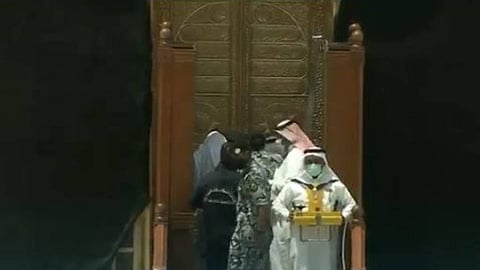 ونشرت قناة «الإخبارية» فيديو لإغلاق باب الكعبة عقب الانتهاء من غسيلها من الداخل.