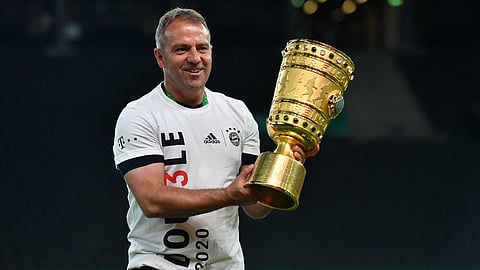 حقق هانسي فليك المدير الفني لنادي بايرن ميونخ الألماني، إنجازًا تاريخيًّا بعد الفوز على باير ليفركوزن، أمس السبت، برباعية لهدفين، والتتويج بلقب كأس ألمانيا على الملعب الأولمبي ببرلين.