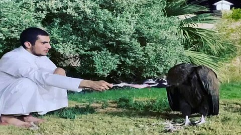 وذكر المركز، عبر تويتر: «عثر المواطن نايف بن شويه، على أحد الطيور المهاجرة المهددة بالانقراض وهو «النسر الرمادي»، وقد قام مشكورًا بالتواصل مع المركز للإفادة ومن ثم إطلاق سراحه ليكمل مسيرة هجرته».