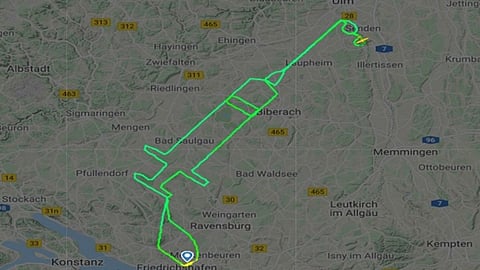 رسم طيار في ألمانيا حقنة بمسار رحلته في السماء قبل إطلاق حملة التطعيم ضد فيروس كورونا في جميع أنحاء أوروبا.