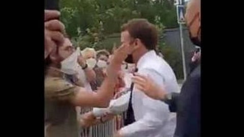 وأكد قصر الإليزيه صحة مقطع فيديو نشر عبر الانترنت يظهر ماكرون وهو يقترب من صف من المواطنين لمصافحتهم، في الوقت الذي مد فيه أحد الأشخاص يده ليصفعه من خلف الحاجز، ووصف الإليزيه الحادث بأنه محاولة صفع، فيما تم اعتقال شخصين.