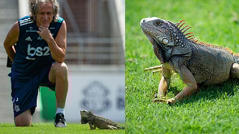 على الرغم من المواقف الصعبة التي تعرض لها، والمنافسين الذين تغلب عليهم في مشواره التدريبي الطويل، إلا أن المدير الفني السابق لفريق الهلال، والمدرب الحالي لفلامنجو البرازيلي، البرتغالي جورجي جيسوس، لم يكن يتخيل أن يأتي اليوم الذي يقف فيه عاجزًا عن التعامل مع موقف أغرب من الخيال، حين فوجئ بضيف ثقيل يحتل ملعب تدريب فريقه، وحاول جيسوس إقناع هذا الضيف بالرحيل حتى يتمكن لاعبو فلامنجو من أداء مرانهم، إلا أن جميع محاولاته باءت بالفشل الذريع؛ لأن الضيف الثقيل لم يكن سوى حيوان الإجوانا الذي ينتمي لفصيلة السحالي.