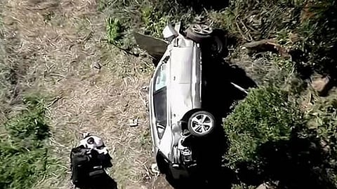 وأظهرت لقطات فيديو من موقع الحادث، سيارة وودز ذات اللون الرمادي الداكن من طراز جنيسيس وهي محطمة تمامًا وترقد على جانبها أسفل التل ونوافذها مهشمة.