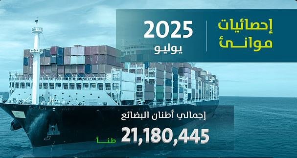 حققت الموانئ التي تشرف عليها الهيئة العامة للموانئ "موانئ" خلال شهر يوليو لعام 2025م ارتفاعًا في أعداد الحاويات المناولة بنسبة 12.01%، لتصل إلى 722,502 حاوية قياسية، مقارنة بـ645,019 حاوية قياسية بالفترة المماثلة من العام الماضي 2024م، كما سجّلت حاويات المسافنة ارتفاعًا بنسبة 35.34%، لتصل إلى 175,666 حاوية، مقارنة بـ129,797 حاوية العام الماضي.