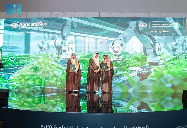 افتتح وزير البيئة والمياه والزراعة المهندس عبدالرحمن بن عبدالمحسن الفضلي، بالرياض، فعاليات النسخة الثانية والأربعين لـ "المعرض الزراعي السعودي 2025"، الذي يستمر أربعة أيام، بمركز الرياض الدولي للمؤتمرات والمعارض، بمشاركة أكثر من 446 جهة وشركة من 34 دولة، من بينها إحدى عشرة مشاركة رسمية؛ لاستعراض أحدث التقنيات والحلول والابتكارات، في مجالات الإنتاج النباتي والحيواني والسمكي، بما يعكس التطور الكبير الذي يشهده القطاع الزراعي في المملكة، وإسهامه في تعزيز الأمن الغذائي، وتحقيق الاكتفاء الذاتي للعديد من المحاصيل والمنتجات الزراعية؛ مما أسهم في استدامة الإنتاج الغذائي، وفقًا لمستهدفات رؤية السعودية 2030.