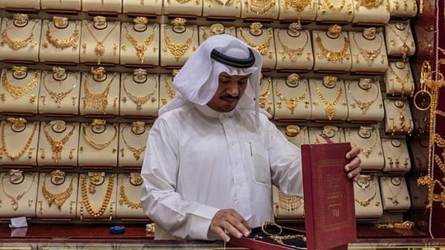 وبلغ سعر جرام الذهب عيار 24 في السعودية، إلى نحو 215.06 ريال (57.32 دولار)، وسجل سعر جرام الذهب عيار 21 (الأكثر تداولًا في الأسواق) نحو 188.18 ريال (50.16 دولار).