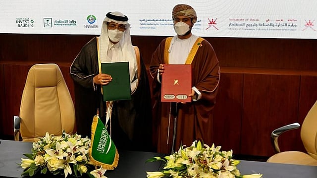 وجرى خلال اللقاء توقيع مذكرة تفاهم بين المملكة العربية السعودية وسلطنة عُمان للتعاون في مجال تشجيع الاستثمار، حيث وقع الاتفاقية وزير الاستثمار المهندس خالد بن عبدالعزيز الفالح، ووزير التجارة والصناعة وترويج الاستثمار بسلطنة عمان قيس بن محمد اليوسف.