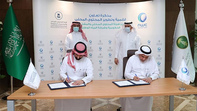 تمَّ توقيع الاتفاقية بحضور معالي المهندس عبد الرحمن بن عبد المحسن الفضلي، وزير البيئة والمياه والزراعة ورئيس مجلس إدارة شركة المياه الوطنية، ومعالي الأستاذ بندر بن إبراهيم الخريف، وزير الصناعة والثروة المعدنية ورئيس مجلس إدارة هيئة المحتوى المحلي والمشتريات الحكومية، ووقّع الاتفاقية كل من المهندس محمد بن أحمد الموكلي، الرئيس التنفيذي لشركة المياه الوطنية، والأستاذ عبد الرحمن بن عبد الله السماري، الرئيس التنفيذي لهيئة المحتوى المحلي والمشتريات الحكومية.
