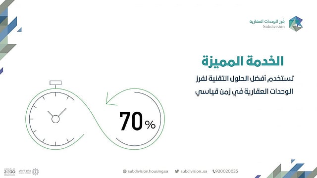 وأشار البرنامج إلى أن الخدمة المميزة ستسهم بتقليص مدة إنجاز الطلب، لتمكين إكمال طلب الفرز خلال مدة زمنية قياسية، وتقليص إجراءات إدخال البيانات من قبل المكاتب الهندسية إلى 70%، ورفع جودة البيانات المرفوعة من المكاتب الهندسية.