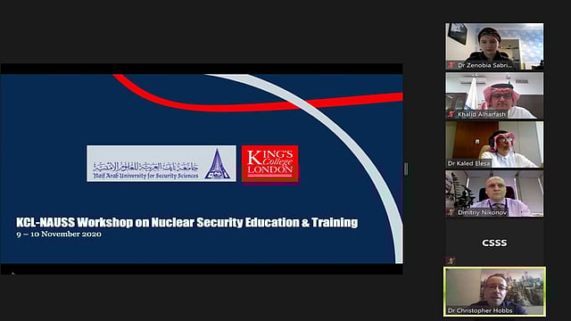 بدأت اليوم أعمال ورشة عمل «التعليم والتدريب في مجال الأمن النووي»، التي تنظمها جامعة نايف العربية للعلوم الأمنية بالتعاون مع جامعة كنجز كولج لندن عبر تقنية الاتصال المرئي خلال يومي 9 و10 نوفمبر الحالي.