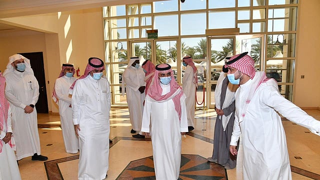 ورافق الشيخ السديس، فضيلة إمام وخطيب المسجد الحرام الشيخ الدكتور الشيخ ماهر المعيقلي، ووكيل الرئيس العام للشؤون العلمية والفكرية الدكتور ناصر الزهراني، ووكيل الرئيس العام للشؤون التوجيهية والإرشادية الشيخ سليمان المقوشي، والمدير العام لمكتب الرئيس العام بدر آل الشيخ.