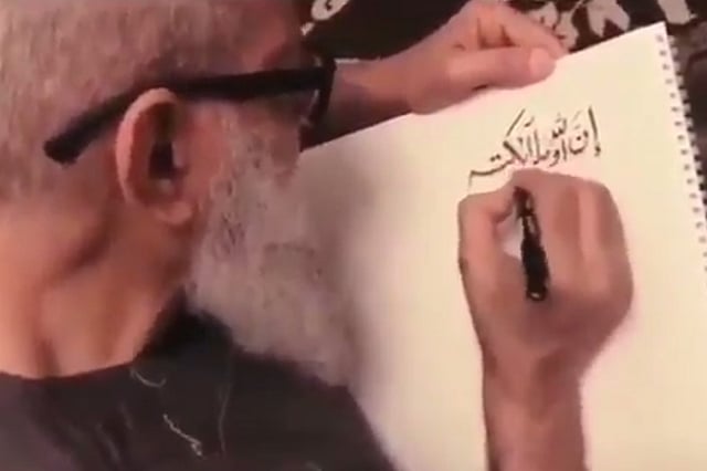 وانتشر مقطع مصور عبر مواقع التواصل يوثق براعة المواطن مرعي بن غرمان العمري، والذي أبهر الجميع بخطه العربي البديع في كتابة آيات من القرآن الكريم.