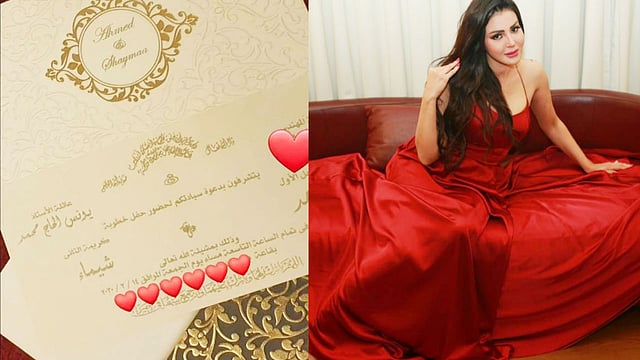 وكُتب على دعوات الحفل اسم أسرة شيما وعائلة يونس الحاج أحمد وخطيبها رجل أعمال يسمى أحمد.