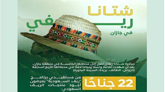 تنطلق في منطقة جازان، غدًا، فعالية "شتانا ريفي" التي ينظمها برنامج التنمية الريفية الزراعية المستدامة "ريف السعودية" في عددٍ من مناطق المملكة؛ بهدف إبراز جماليات الريف السعودي، وتسليط الضوء على المنتجات الزراعية والحرفية المتنوعة؛ دعمًا وتعزيزًا للسياحة الريفية الزراعية في المناطق كافة.