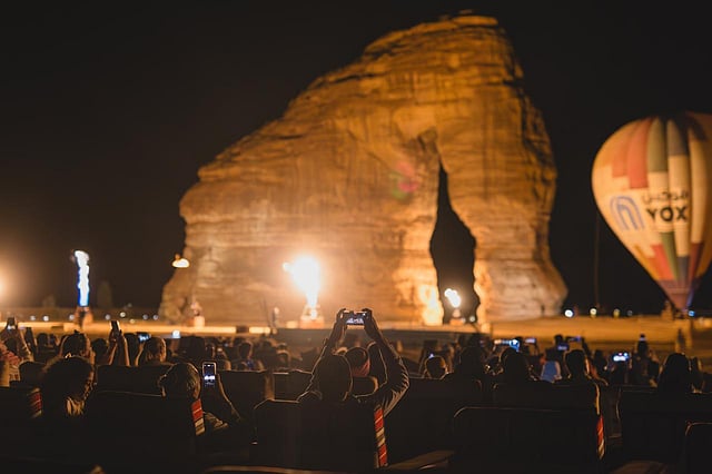 واستمتع الزوار بمقاعد مريحة وخيارات مأكولات ومشروبات متنوعة لتعزيز تجربتهم، وتم توفير معلومات الحجز وجدول العروض عبر موقعي ڤوكس سينما ومهرجان سماء العلا.