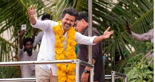 وفي نفس السياق تداول عدد من رواد التواصل الاجتماعي مقطع فيديو عبر منصة "إكس"، يظهر فيه الممثل الهندي فيجاي، يتحدث وسط الآلاف من المواطنين.