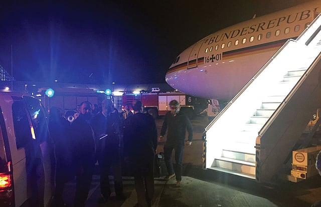 وكانت الطائرة "كونراد أديناور"، وهي طائرة من طراز إيرباص (إيه 340 – 300) ومزودة بأربعة محركات وتستخدمها الحكومة في رحلات رسمية وأعمال دبلوماسية، أقلعت من برلين لكنها عادت أثناء تحليقها فوق هولندا.