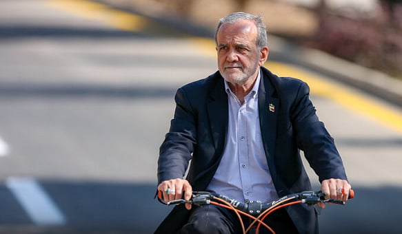 انتشر مقطع فيديو للرئيس الإيراني مسعود بزشكيان خلال ركوبه للدراجة الهوائية برفقة عدد من المسؤولين في أصفهان، وقد أثار الفيديو تفاعلاً واسعاً على مواقع التواصل الاجتماعي داخل البلاد.