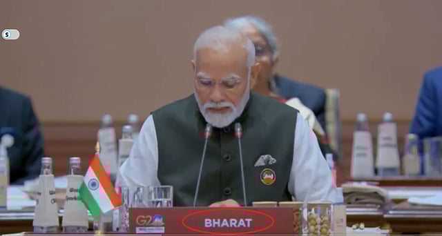 وأظهر مقطع فيديو للحظة إلقاء رئيس وزراء الهند ناريندرا مودي كلمة بلاده وأمامه الاسم الجديد للهند "بهارات".