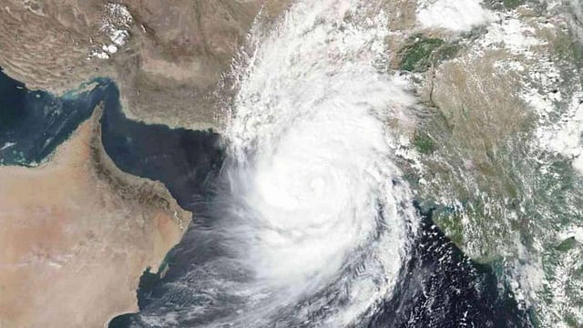 وأوضح أن تمركز الإعصار المداري «شاهين» شمال غرب بحر العرب عند خط عرض 24.3 شمالاً وخط طول 60.9 شرقاً، يصاحبه تشكلات مختلفة من السحب يتخللها سحب ركامية ممطرة مختلفة الشدة ورياح قوية على بحر العرب وتبلغ سرعتها حول المركز من 116 إلى 140 كم/ الساعة.