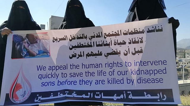 كشفت رابطة أمهات المختطفين، عن تعرض 198 من المختطفين المرضى في سجون ميليشيا الحوثي الإرهابية المدعومة من إيران، للتعذيب الجسدي والنفسي والحرمان من الرعاية الصحية.