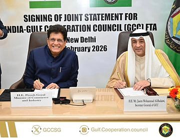 جاء ذلك خلال مراسم التوقيع على البيان المشترك بشأن إطلاق مفاوضات اتفاقية التجارة الحرة بين الأمين العام وبيوش غويال، وزير التجارة والصناعة في جمهورية الهند، اليوم الثلاثاء الموافق 24 فبراير 2026م، في العاصمة الهندية نيودلهي.