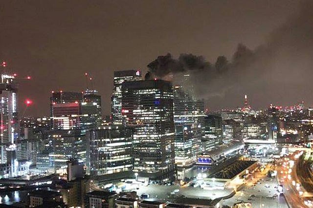 وقالت صحيفة ميرور البريطانية: إن الدخان الأسود الكثيف تصاعد من مبنى بنك باركليز بمنطقة كناري وارف في لندن.