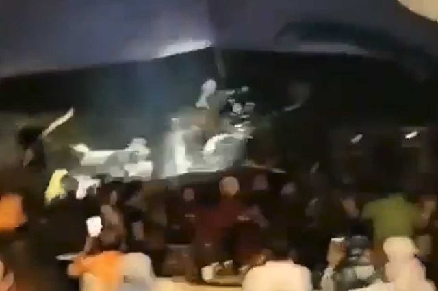 انتشر فيديو على مواقع التواصل الاجتماعي، اليوم الأحد، لأعضاء فرقة موسيقى البوب الإندونيسية "سفنتين"، وهم يقدمون أغنياتهم للمتفرجين في إحدى حفلاتهم، وهم ينجرفون تحت موجات تسونامي.