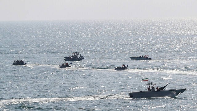 وثق مقطع فيديو لحظة غرق سفينة إنزال على متنها 7 أشخاص قرب جزيرة لارك المطلة على مضيق هرمز.