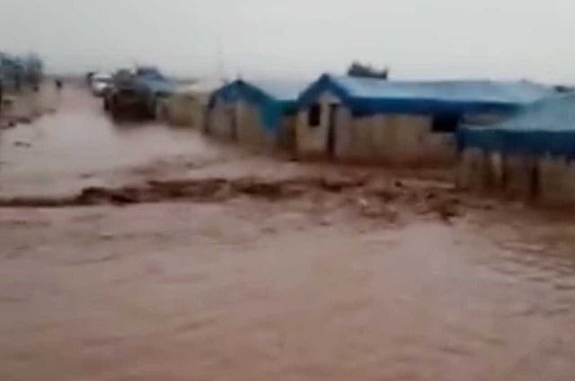 أغرقت مياه الأمطار والسيول خيم النازحين في ريف محافظة إدلب وحلب واللاذقية (شمال سوريا وشمال غربها)؛ حيث أظهرت مقاطع فيديو على مواقع التواصل الاجتماعي، طرقًا مغمورة بالمياه في مخيم أطمة للنازحين بمحافظة إدلب.