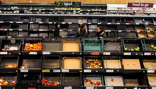وشارك متسوقون بريطانيون صورًا للرفوف الفارغة على تويتر. قال متحدث باسم أحد المتاجر الكبرى في المملكة المتحدة، في وقت سابق من هذا الأسبوع، إنه "يواجه تحديات في الحصول على بعض المنتجات" المزروعة في المنطقة.