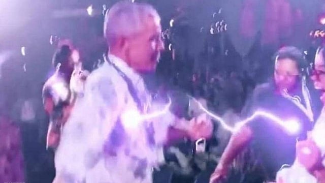 وتداولت وسائل إعلام مقطع فيديو يظهر أوباما وهو يرقص خلال الحفل دون كمامة.