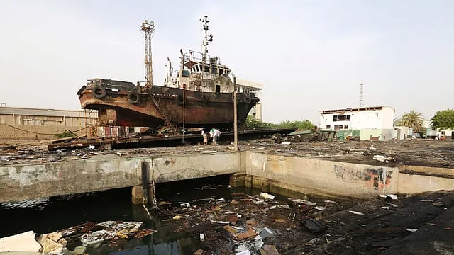 آثار غارات إسرائيلية سابقة على ميناء الحديدة