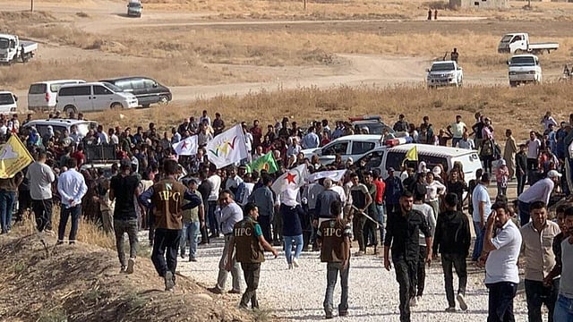 وردد المتظاهرون الذين تجمعوا على الحدود قرب رأس العين، هتافات: «يسقط الاحتلال، يسقط أردوغان»، وفق «العربية».