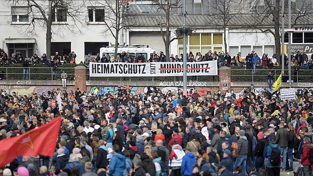 خرج آلاف الأشخاص في مسيرة بمدينة شتوتجارت الألمانية، للاحتجاج على القيود الخاصة باحتواء فيروس كورونا المستجد.