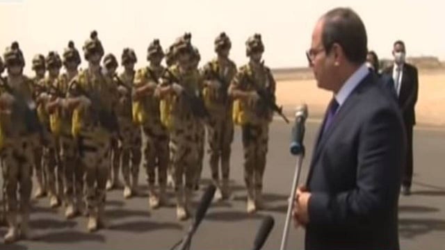 وقال السيسي للقوات المصرية في المنطقة الغربية: «كونوا مستعدين لأيّ مهام».