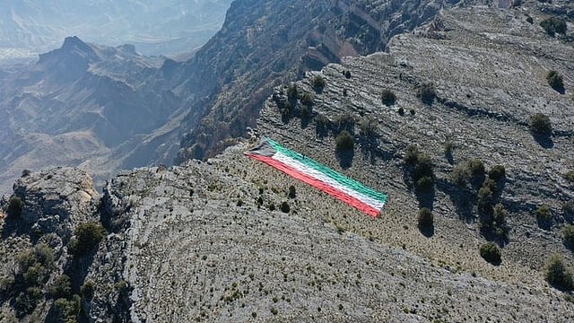 وقال رئيس الفريق التطوعي الكويتي KFlag فؤاد قبازرد، لوكالة الأنباء الكويتية "كونا": إنه تم رفع علم للكويت بحجم 2742 مترًا مربعًا وتنصيبه فوق أعلى جبال الوطن العربي "جبل شمس" بسلطنة عمان، على ارتفاع 3028 مترًا عن سطح البحر.