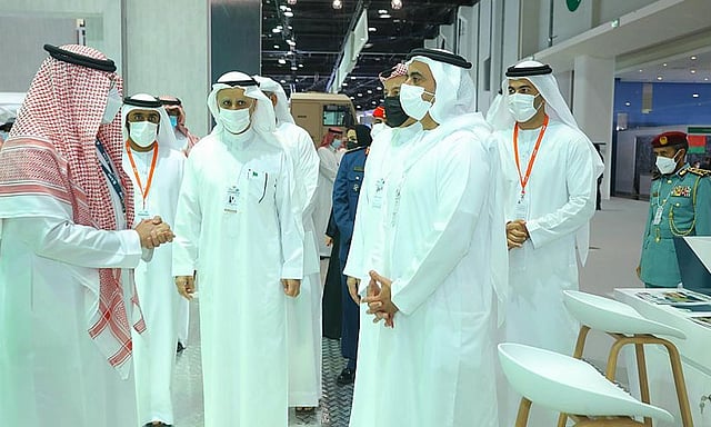 ورافق الوزيرين خلال الزيارة محافظ الهيئة العامة للصناعات العسكرية المهندس أحمد بن عبد العزيز العوهلي، ووكيل رئيس أمن الدولة للموارد البشرية الفريق ناصر بن علي الصيخان، وسفير خادم الحرمين الشريفين لدى دولة الإمارات العربية المتحدة تركي بن عبدالله الدخيل، والرئيس التنفيذي للشركة السعودية للصناعات السعودية المهندس وليد أبوخالد.