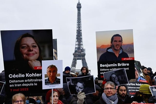 وتدهورت العلاقات بين فرنسا وإيران في الأشهر الأخيرة، إذ احتجزت طهران 7 مواطنين فرنسيين، فيما وصفته باريس باحتجاز الدولة لرهائن. تم الإفراج عن واحدة من هؤلاء، وهي الأكاديمية الإيرانية الفرنسية فريبا عادلخاه، لكن لا يزال من غير الواضح إلى متى ستبقى في إيران قبل العودة إلى فرنسا.