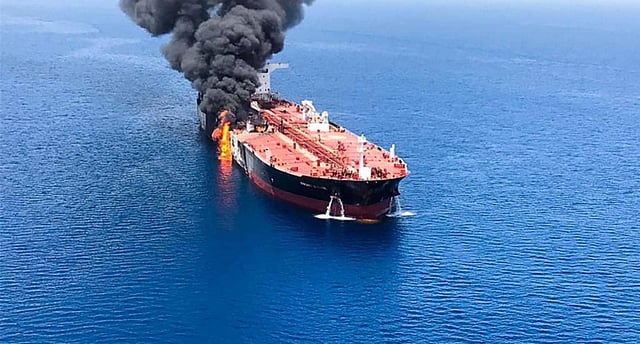 ففي مايو، ذكرت أربع ناقلات أنها أطلقت عليها النار أثناء مرورها، وفي يونيو، تصدرت حالتان أخريان عناوين الصحف، فيما هوجمت ناقلات النفط Kokuka Courageous التابعة لشركةKokuka Sangyo اليابانية وAltair التابعة لشركة الشحن النرويجية Frontline بواسطة عبوات ناسفة.