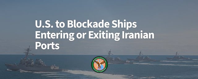 أعلنت القيادة المركزية الأمريكية أن الجيش الأمريكي سيفرض سيطرة بحرية في خليج عُمان وبحر العرب شرقي مضيق هرمز، وأن هذا الإجراء سيشمل جميع السفن بغض النظر عن العلم الذي ترفعه.