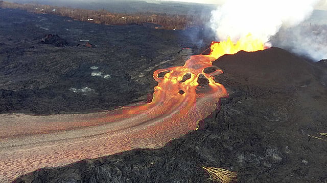 والسحب البركانية –أي الغاز– تتصاعد إلى الغلاف الجوي خلال ثوران البركان.