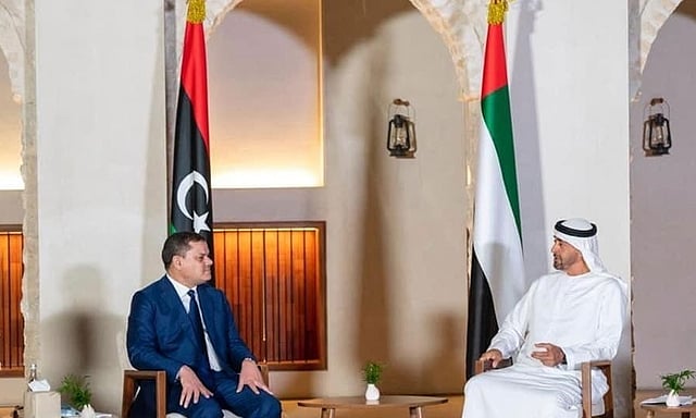 وكان الدبيبة التقى ولي عهد أبوظبي، الشيخ محمد بن زايد آل نهيان ولي عهد أبوظبي نائب القائد الأعلى للقوات المسلحة بالإمارات الذي أكد وقوف الإمارات إلى جانب الشعب الليبي في هذه المرحلة المفصلية التي يمر بها.